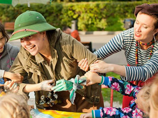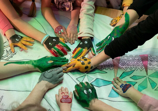 А значит, нужно будет спасать слонёнка от крокодила, давать тумаки с помощью разрисованных гримом ладошек, общаться с артистами и друг с другом. У каждого ребенка своя роль!