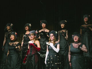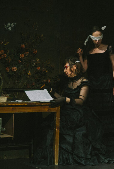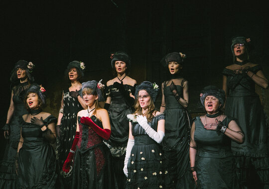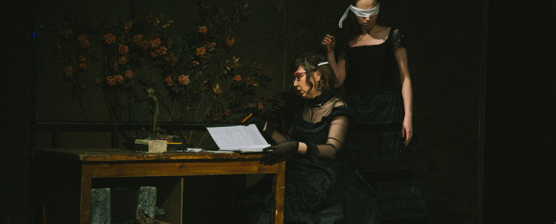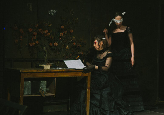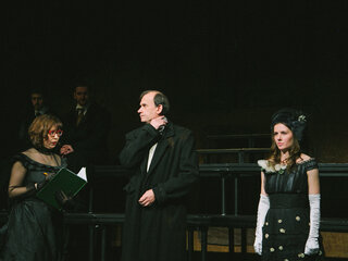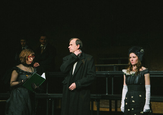 Смокинг и кирзовые сапоги, жабо и телогрейка, кринолин и шапка-ушанка в спектаклях Погребничко мирно соседствуют друг с другом, Так же, как Володин и Достоевский. Режиссёром движет не желание противопоставить эпохи или социальные срезы, а скорее уравнять их в правах.