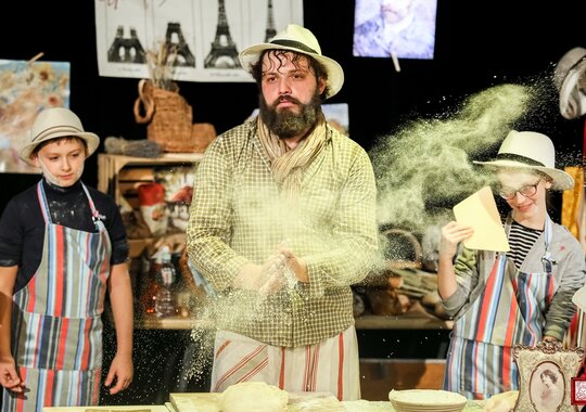 «Семейная пекарня» — путешествие в мир фантазии. Гости этого спектакля — не просто зрители, но активные участники, занятые в сценическом действии наравне с актёрами. Им предложат выбрать места в самолёте и пристегнуть ремни — так под романтичную музыку и аромат свежеиспеченного хлеба начнётся путь в Париж, в детство — самую искреннюю пору жизни — и в гости друг к другу.