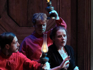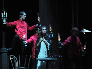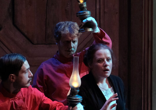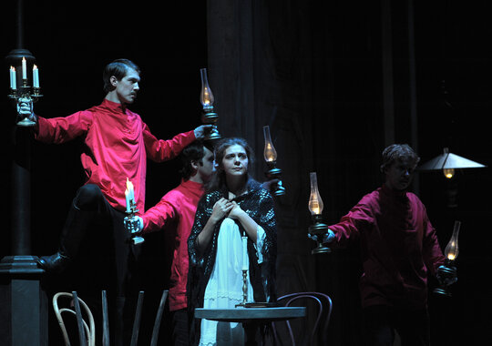 Дитятковский ставит комедию «Сердце не камень» без привычной для Островского размеренности и степенности. Действие разворачивается стремительно, весело.