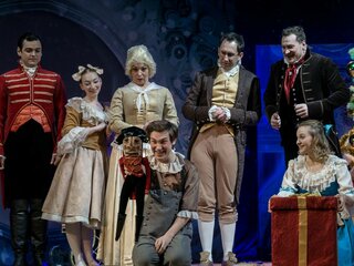 Спектакль «Щелкунчик» — словно волнующий рождественский сон, полный чудесных превращений и открытий: новогодняя ёлка, ожившие куклы, загадочный Дроссельмейер, зловещая Мышильда со своим сыночком, Мышиным Королём, отважный и прекрасный принц Натаниэль (он же Щелкунчик).