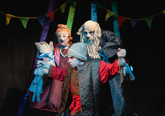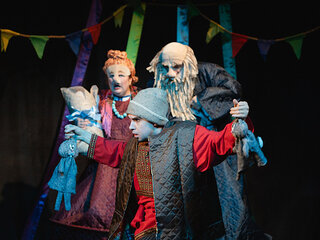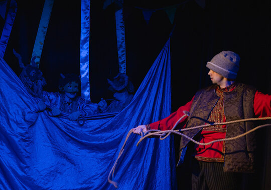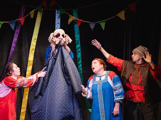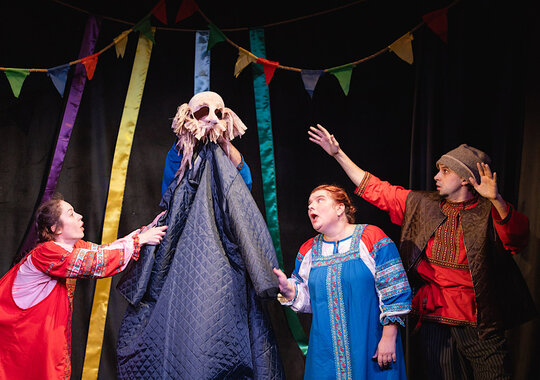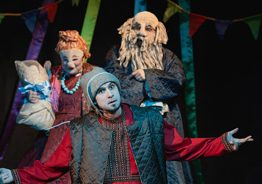 Вы попадете на ярмарку, где скоморохи разыграют перед вами сюжет известной сказки. Замечательные стихи, уморительные образы, яркие костюмы, песни и пляски и, конечно, мораль о том, что каждый получит по заслугам.