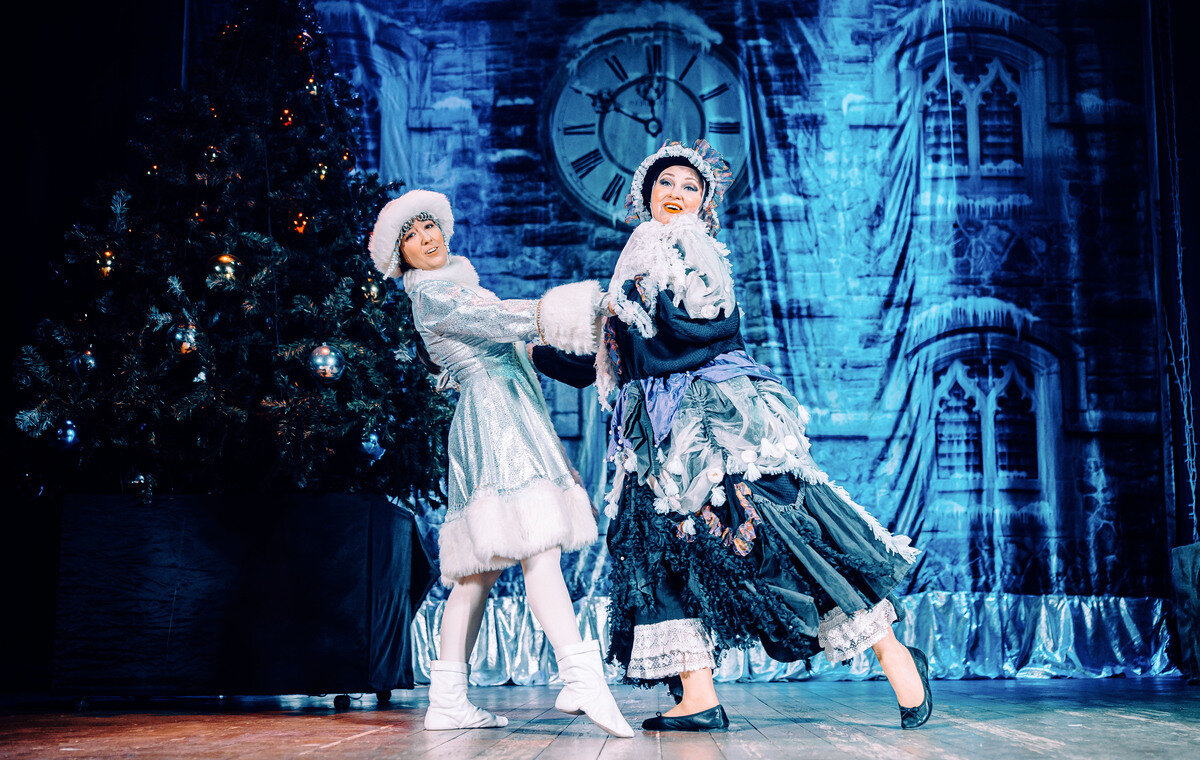 У простого российского школьника Антошки есть несколько волшебных предметов. А именно: уголёк с пепелища Змея Горыныча, рубль неразменный и волшебные часики. Если эти часики остановить, то остановится время на всей планете. Только никто Антошке не верит. Тогда Антошка лепит снежных баб и прячет в одной из них волшебные часики. Если часики волшебные, то снежная баба оживёт и придёт на Новогодний праздник к ним в школу. Он ещё не знает, что другой снежной бабе случайно достался уголёк вместо сердца! Обе снежные бабы оживают и становятся одна Снегурочкой, а другая Чёрной Душой потому, что у неё уголёк вместо сердца. Чёрная душа хочет остановить время. Но силой отобрать Часики нельзя. Тогда она использует коварство, подкуп, шантаж, обман и, в конце концов, овладевает часиками и останавливают время! Но Дед Мороз знает волшебную тайну Нового года! Для того, чтобы волшебные часики пошли, они вновь должны стать сердцем! Дети вместе с героями сказки говорят волшебные слова. Часики вновь идут и времени больше ничего не угрожает! Волшебная тайна Нового года заключается в горячих, добрых, честных, преданных сердцах живущих на земле людей. В сказке много музыки, песен и танцев. Рекомендованный возраст для просмотра спектакля от 3 лет. Продолжительность: 1 час.
