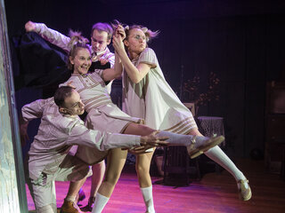 Спектакль Аркадия Черкашина по мотивам произведений Евгения Клюева – это прекрасно написанные и виртуозно исполненные артистами истории в ретро-стиле для детей и взрослых.