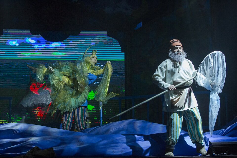 В основе спектакля – известные и всеми любимые сказки Александра Сергеевича Пушкина: «Сказка о попе и о работнике его Балде», «Сказка о рыбаке и рыбке», «Сказка о золотом петушке».