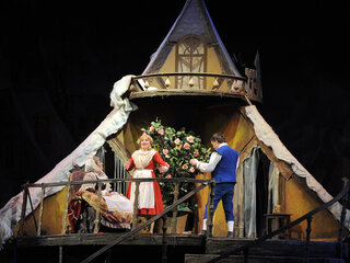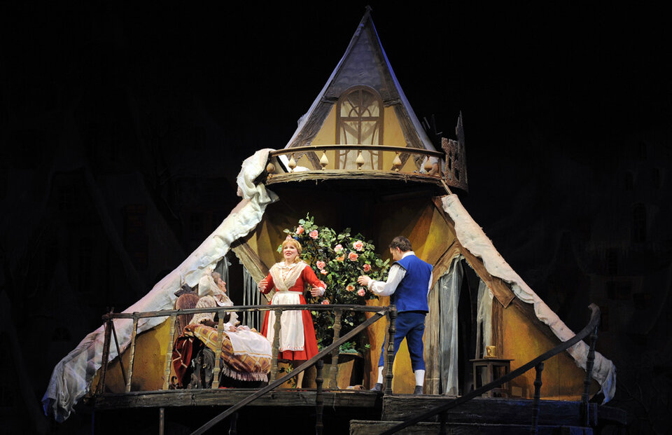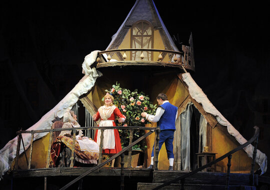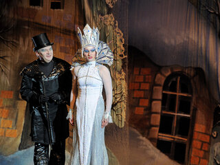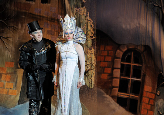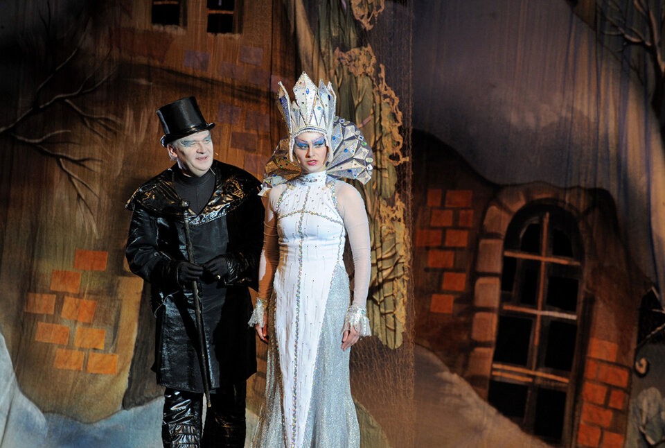 В основе сюжета — пьеса замечательного драматурга Евгения Шварца, давшего новую жизнь знаменитой сказке Ганса Христиана Андерсена. В характеры традиционных персонажей — Снежной королевы, брата и сестры Кая и Герды, Тролля вплетены новые мотивы. Снежная королева не только холодна и жестока, ей искренне нравится Кай, она мечтает оставить его у себя навсегда. Тролль, её верный слуга, работает не за страх, а за совесть, интрига — его стихия. Особенно обаятелен образ Маленькой Разбойницы, где безрассудство и своенравие соединяются с сердечной теплотой. Тема родного дома и любви, способных противостоять холоду, жестокости и властолюбию, стала главной в спектакле, где так много захватывающих событий, проникновенных мелодий и ярких красок.