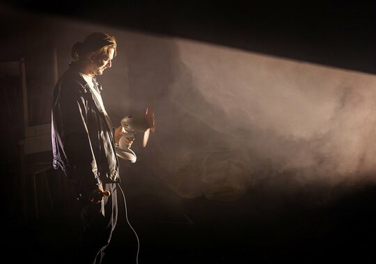 Егор Перегудов: «В рассказах Михайлова, написанных про 90-е, есть точное ощущение размытой реальности человека в информационном обществе. Ты никогда не знаешь точно, что происходит, ты лишь объект информационной атаки. И чтобы как-то выжить в этой абсурдности, любым способом пытаешься очертить границы реальности. В спектакле мы берём очень разные театральные формы, чтобы эти границы найти».