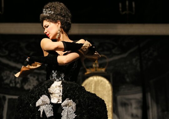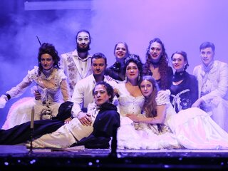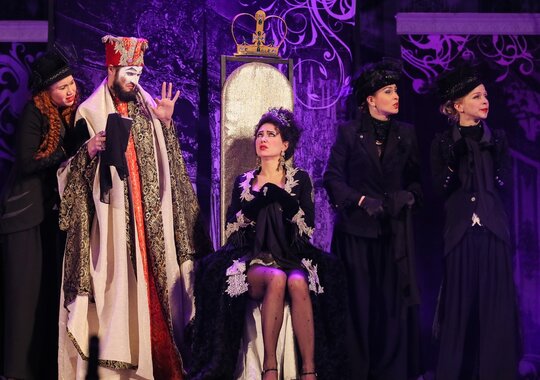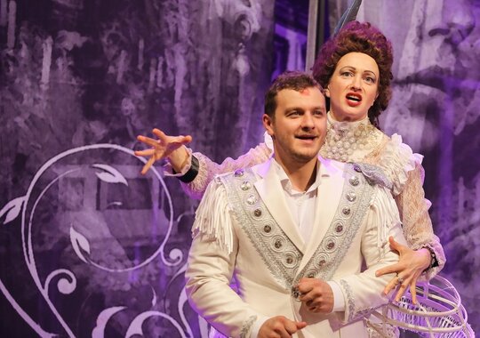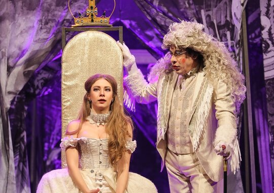 Фавориты и фаворитки творят историю страны и принимают судьбоносные решения под властью собственных эмоций, в то время как королева бессильна. Во всем этом хаосе виконт Болингброк пытается сыграть на благо всех, не упустив при этом собственную выгоду. Спектакль «Заговор по-английски» по пьесе Э. Скриба «Стакан воды» выстроен по принципу синтеза различных театральных жанров. За три часа зрители погружаются сразу в несколько измерений. Действие начинается с придворной оперы и перерастает в детектив. Детектив превращается в лихо закрученную любовную интригу. Дальнейшее на себя берёт яркая комедия, доводя сюжетную линию до гротеска с элементами карнавального шоу. Ближе к финалу любовная линия приобретает оттенки трагического фарса. Помимо захватывающего сюжета и острого юмора — визитной карточки спектаклей Сергея Алдонина, вы увидите танцевальные номера в постановке любимого ученика Романа Виктюка Александра Мацко и яркие костюмы от главного художника театра Вахтангова Максима Обрезкова.
