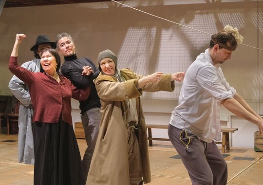 Вроде не происходит никаких событий, дни похожие друг на друга, следуют монотонно в этом старом доме, наполненном звуками, запахами — в доме, в котором оживает каждый предмет. Но при этом на сцене возникает гоголевский мир, удивительно яркий и выразительный, поэтический и прекрасный, абсолютно реальный и совершенно ирреальный. Сеятель и Дура, словно сошедшие с картины Ван Гога, Приказчик, Кошка и даже сам Пушкин, Пульхерия Ивановна и Афанасий Иванович — все они кажутся сказочными героями, живущими в придуманном мире по своим законам. Но столько обаяния в этой буколической жизни, мирной и безмятежной, в которой много любви, но и печали, когда приходится прощаться с самым близким человеком.