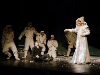 Пресловутый шкаф оборачивается сугробом, кусочек прихожей − жилищем Фавна, шубы взлетают вверх и рассыпаются тысячами снежинок. И от ледяной заколдованной Нарнии все равно веет теплом, а в финале прямо в сугробах распускаются алые цветы.