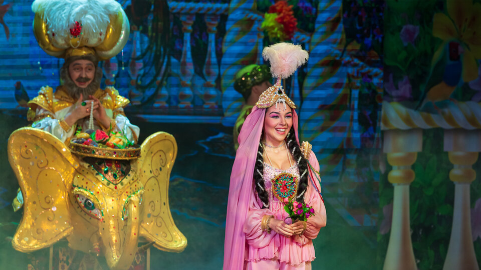 Волшебная сказка-иллюзия о Добрейшем Султане и прекрасной принцессе Амине, коварнейшей Королеве Змей и отважном юноше Джамиле, седобородом Звездочете и торговце сладостями Сафаре в восточном калейдоскопе древнейшей магии, сладчайшей музыки и чарующих танцев. У вас на глазах расцветет настоящее апельсиновое дерево, оживет золотая фигура слона, из воздуха появятся чудесные цветы и многое-многое другое... И, быть может, именно сегодня говорящая Голова откроет тайну древнего Талисмана - Талисмана Принцессы.