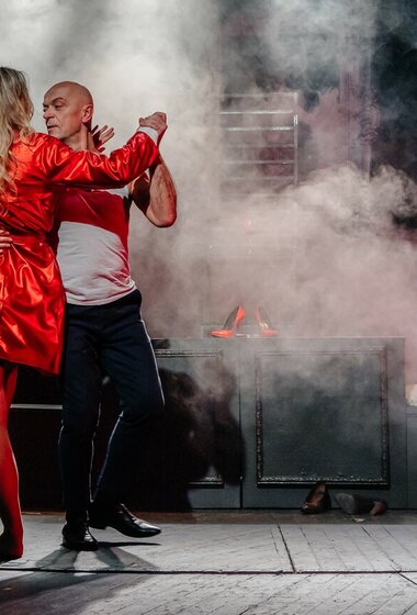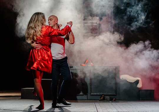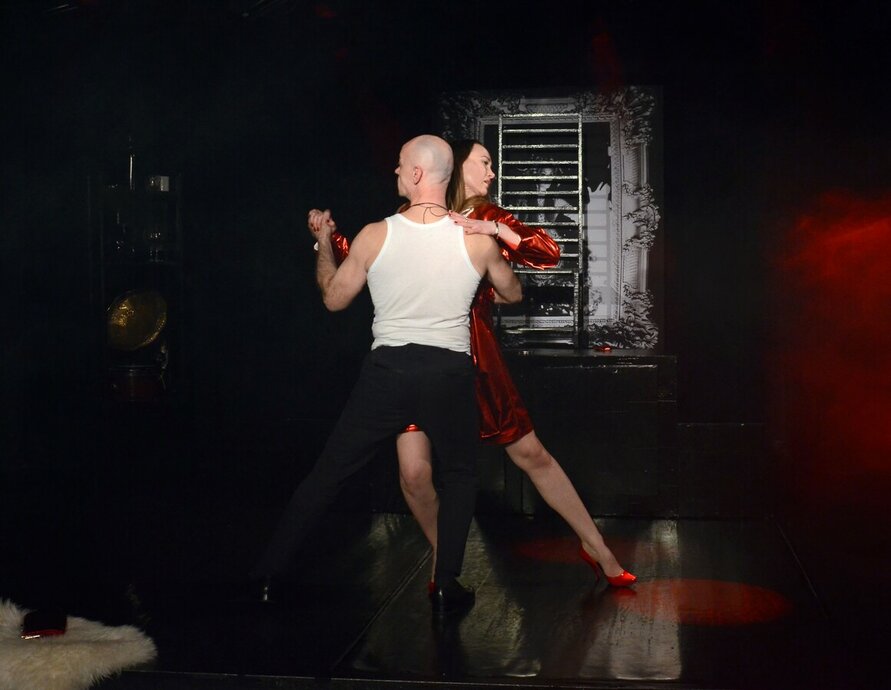 Смелая и авантюрная постановка, которая умело играет с восприятием зрителя и будоражит, создавая предельно яркие эмоции. Изысканная леди и трое мужчин: муж, поэт и бомж. Что их объединяет? Об этом зрителю предстоит узнать лишь в финале. А пока вас ждет вихрь из тайн и иллюзий, хитрых уловок и настоящей драмы. Все вопросы найдут свои ответы в самом конце, под роковые звуки танго. Романтический триллер и тонкий детектив — эти жанры крепко переплелись в одном спектакле. Напряжение и мощная динамика буквально сбивают с ног, давая зрителю насладиться ни на что не похожими впечатлениями.
