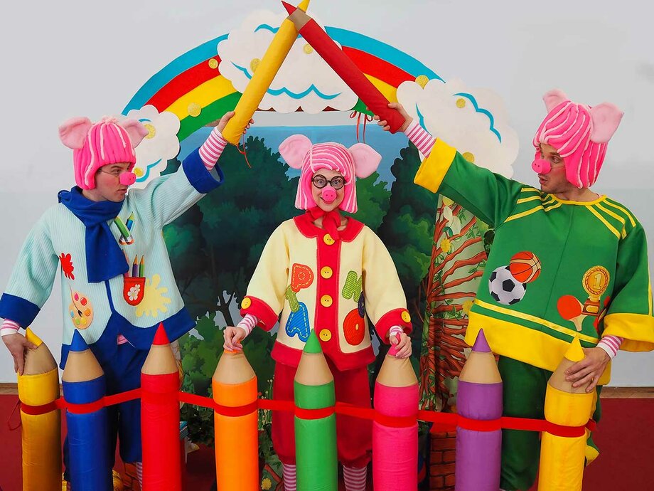 «Три поросенка» — это веселая история о трёх забавных поросятах и сером волке, по мотивам сказки С. Михалкова. Яркий и весёлый спектакль-праздник для самых маленьких зрителей и их родителей!