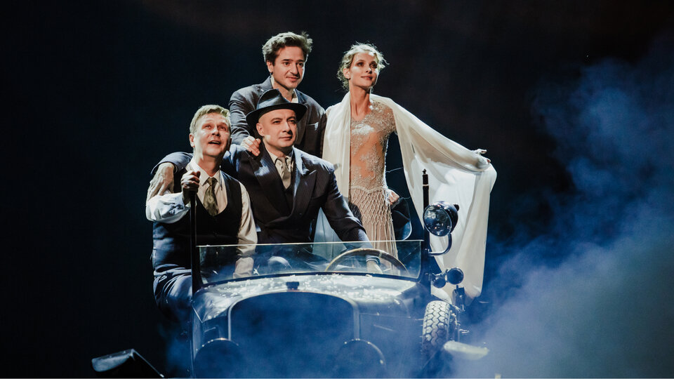 В центре постановки — мир между двумя войнами. Поколение, не успевшее залечить раны прошедшей войны и уже ощутившее приближение будущей. История любви Роберта Локампа и Патриции Хольман звучит лирическим диссонансом на фоне «хроник городской жизни», в мире, стоящем на грани очередной катастрофы. И все же спектакль «Три товарища» доказывает, что нет в жизни ничего важнее любви и нет ничего равного любви. События перестают иметь значение, нет трагического финала, нет смерти Пат, а есть четверо друзей, летящих на своём абсолютно живом и непроданном «Карле» где-то в районе Млечного пути...
