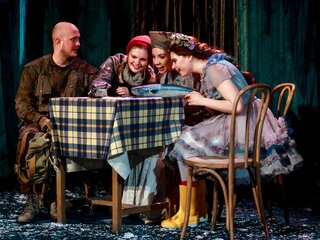 Увлекательный и в то же время философский пересказ на новый лад истории похищения и чудесного спасения Марьи-искусницы. Герои спектакля — бывалый Солдат, который возвращается домой со службы у царя Салтана, злой царь Водокрут, держащий в страхе всю округу, и девочка Варя, чью маму царь забрал в плен. Как настоящий герой, наш Солдат помогает Варе. Он встречает Водокрута, проходит все испытания и даже узнаёт в подводном дворце незнакомую ему прежде Марью-искусницу. Благодаря находчивости Солдата мама Вари возвращается домой, а Марью-искусницу освобождают из плена царя Водокрута, который своими уловками так «замутил воду», что уже не понимает, где правда, а где ложь.