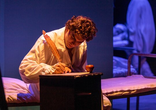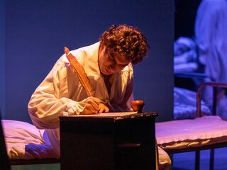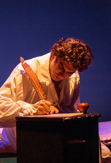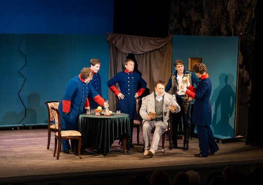 Михаил Александрович Мизюков открыл для всех нас пьесу Андрея Платонова «Ученик лицея», написанную в 1950 году и знакомящую зрителя с прекрасным периодом юности Пушкина — периодом его обучения в Царскосельском лицее, ставшим временем пылких юношеских мечтаний и первых стихотворных опытов. Собственно говоря, Пушкин здесь — ровесник тех юных школьников, которые придут сегодня в зрительный зал.
