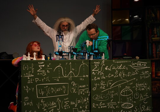 Спектакль также и о семейных ценностях, теплоте взаимоотношений. Здесь и родители не скучают: есть возможность выдвинуть свою версию научного эксперимента.