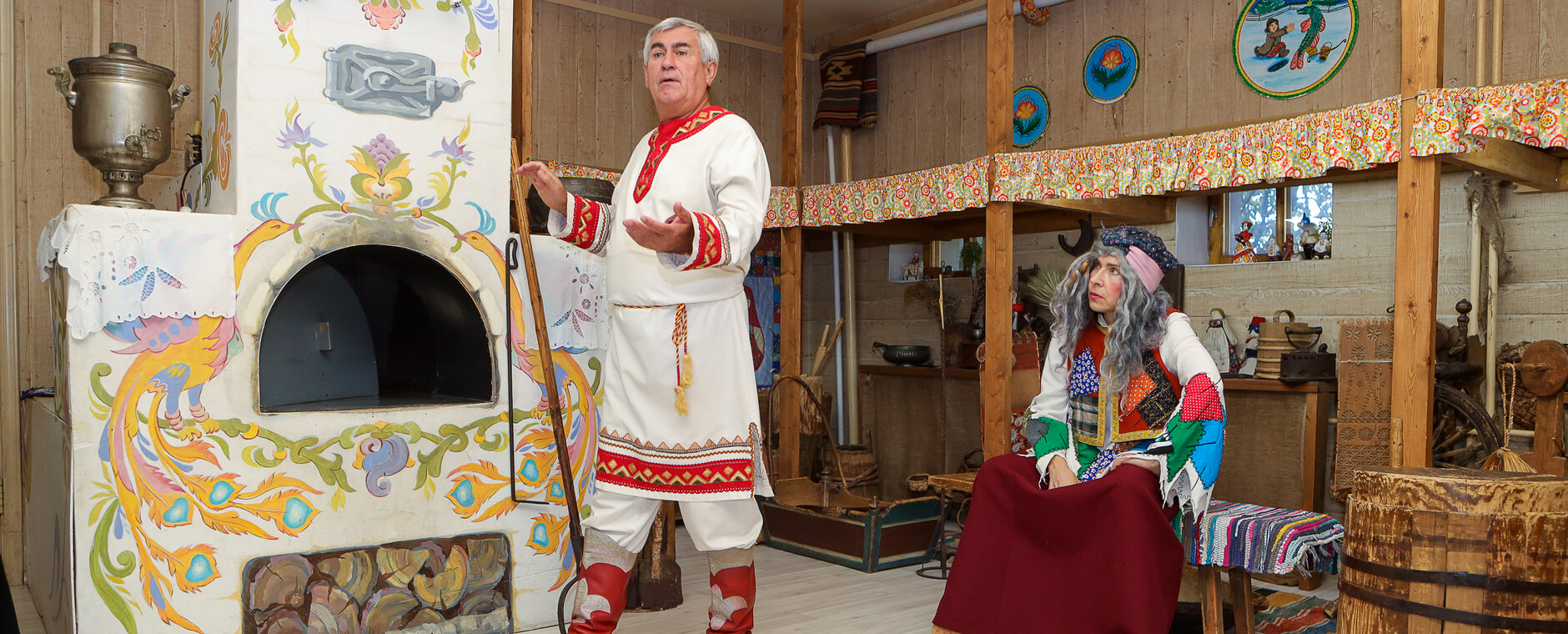 Разбушевался Змей Горыныч. Баба-Яга вместе с ребятами придумает, чем задобрить его и как укротить. Дети узнают о злаковых культурах, из которых готовят основные традиционные блюда, встречающиеся в сказках народов мира. Познакомятся с предметами крестьянского быта и попробуют ими пользоваться. Загадки, игры, хороводы ждут вас в этой программе. А в конце — все смогут примерить на себя народные костюмы.