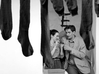 Алексей Монахов, герой романа Андрея Битова, герой спектакля Сергея Аронина – счастливый влюблённый мальчик. Взлетающий по ступенькам к Её двери. Врывающийся в жизнь, которая обещает так много. Его история любви – мальчишеская, самая обычная, банальная. Прекрасная. Какая бывает с каждым.