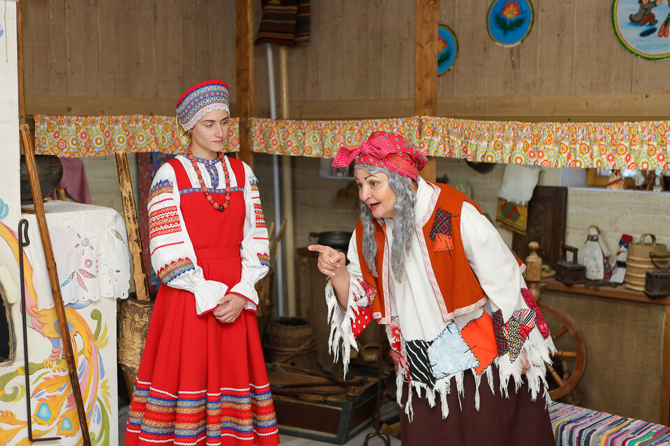 Интересно побывать в избушке Бабы-Яги? Наша добрая Баба-Яга с радостью покажет старинную утварь, о которой дети читали в сказках, загадает загадки и расскажет о разнообразии русских народных сказок. Самые смелые пролезут через волшебную печку и очутятся на полатях. Вместе с Машенькой ребята переоденутся в народные костюмы и поводят хороводы.