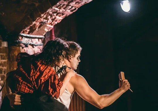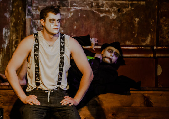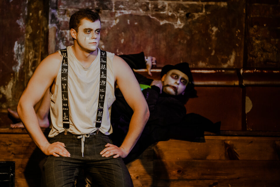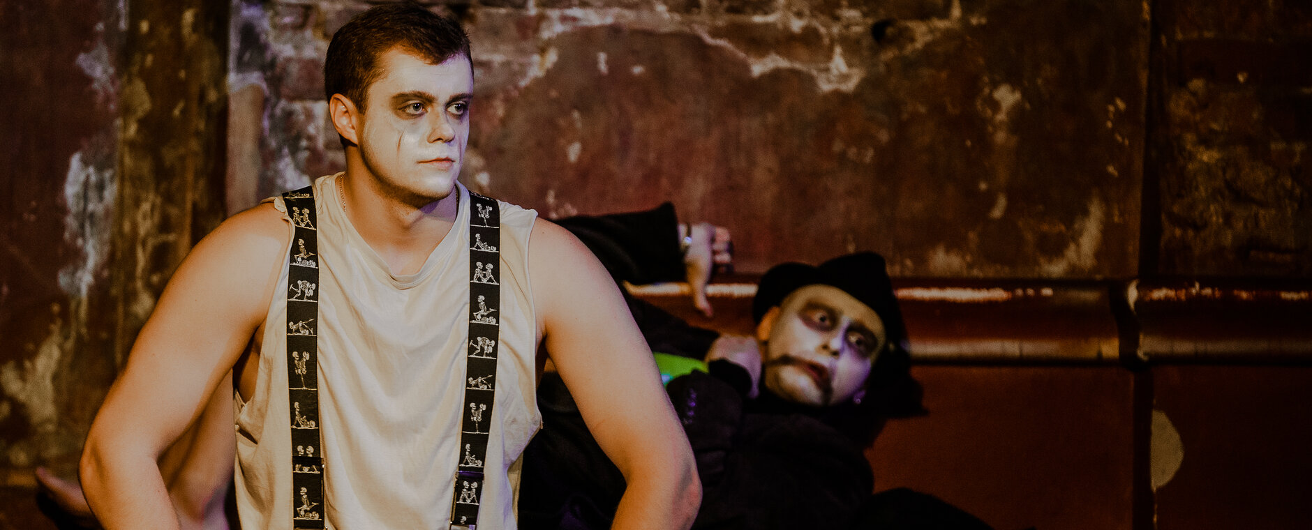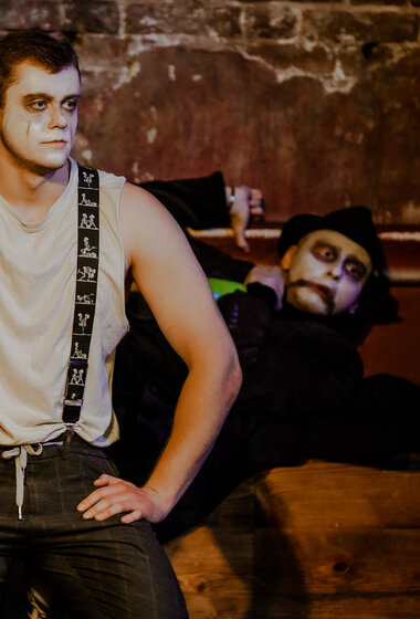 Пьеса «В ожидании Годо» написана Сэмюэлем Беккетом в 1949 году. Мир ее героев — словно ловушка, обрекающая героев на ожидание. Неизвестно, сколько времени они провели в нем. Может, они ждали вечность, а может, всего миг? Спектакль, созданный по мотивам пьесы — это попытка переосмыслить текст автора, взглянуть на него через призму очень личной, человеческой истории героев, поднимающих сложные, запутанные и, порой, абсурдные вопросы философии.