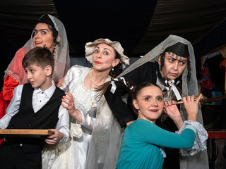 Это смешная, полная курьезов история из жизни «тихого» армянского семейства. Место действия — Тифлис. Время действия — 19 век. По традиции, в день Святого Геворка, армянские семьи посещали Святые места. Кто пешком, а кто на роскошных колясках, говорящих о достатке семьи. Вот и наши герои, облачившись в свои лучшие наряды, собрались, на богатом фургон, в церковь Святого Геворка, что в окрестностях Тифлиса. Но... Как говорится: «Человек предполагает, а Бог располагает». А чтоб узнать, что из этого всего получилось, надо вместе с героями яркого музыкального представления отправиться в паломничество. Итак, экипаж подан. Впереди дорога, ведущая к Храму...