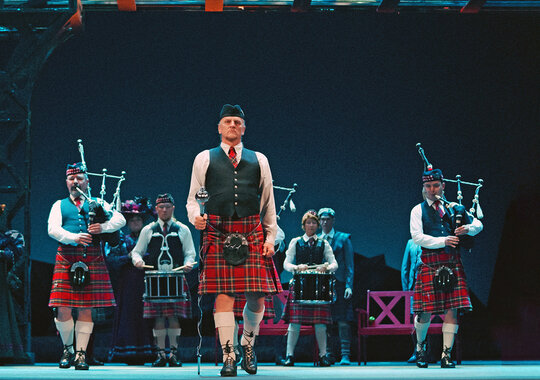 В музыкальном обрамлении, конечно же, звучат волынки и ансамбль городских барабанов.