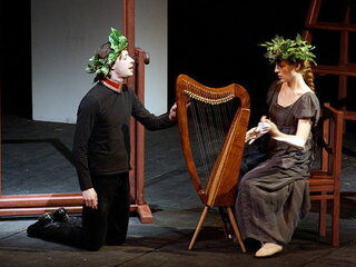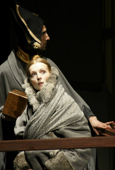 Рассказанная театром часть романа невелика — неполный первый том. Ещё по-детски взбалмошна влюблённая в Бориса Друбецкого Наташа Ростова; ещё не умерла родами маленькая княгиня Lise и князь Андрей только собирается в действующую армию. Война пока лишь повод для салонных разговоров и мальчишеских игр, но сердце уже пронзительно щемит от осознания хрупкости и ненадёжности мирной жизни, развернувшейся на узкой полоске сцены между зрительным залом и картой военных действий, служащей в этом спектакле занавесом.