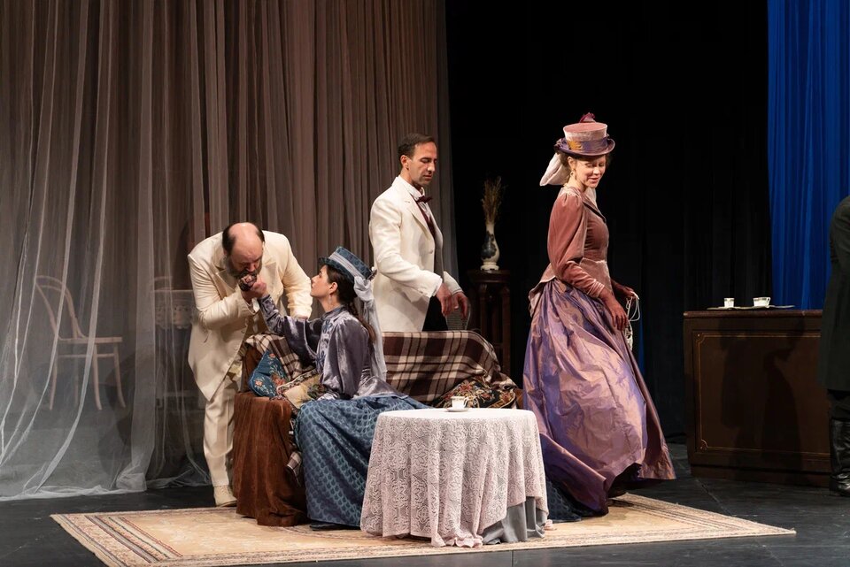 Этот спектакль, очень бережный по отношению к классику, открывает в произведении совершенно новые грани. Здесь и переливы света, и «разомкнутость» пространства, и легкая грусть, и поэзия ушедшего мира русской усадьбы — чеховский импрессионизм, и, конечно, юмор. Собственно сюжет пьесы — афёры с векселями — подается остро, подчас гротескно. Современные ассоциации не подчёркиваются режиссером, они приходят сами собой.