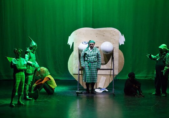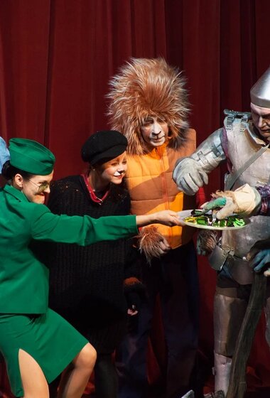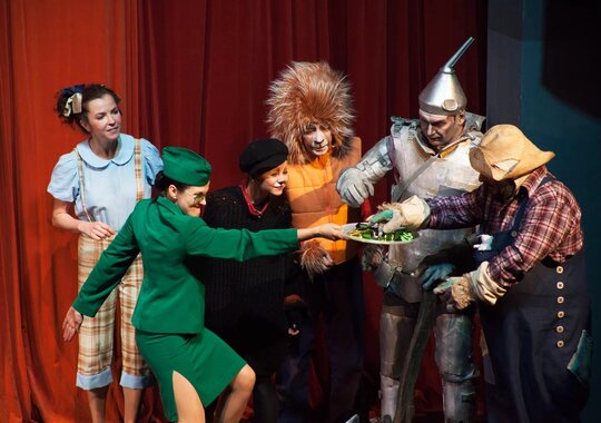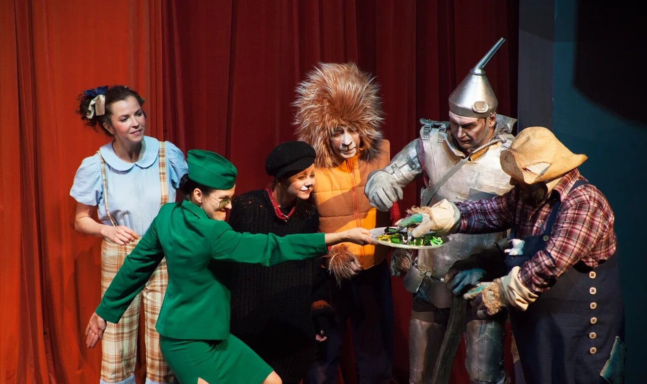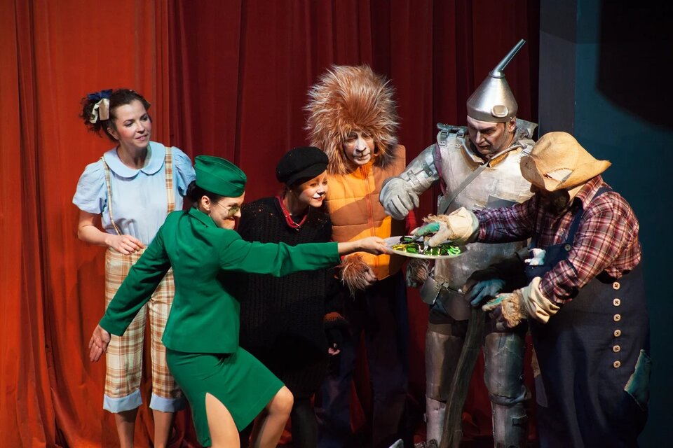 Зрители спектакля отправятся в волшебное путешествие по дороге из жёлтого кирпича. Вместе с девочкой Элли они переживут захватывающие приключения, встретятся со злыми колдуньями и добрыми феями, а также с удивительными существами, в том числе с летающими обезьянами. В этой стране человеческим языком говорят не только животные, но даже, представьте себе — огородное пугало!