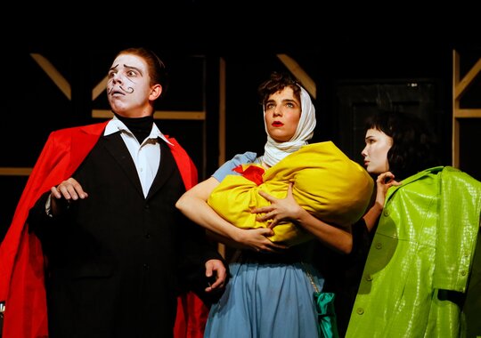 Спектакль родился на втором курсе по итогам работы на первом году обучения в мастерской Заслуженного артиста России, актёра и педагога Олега Тополянского.