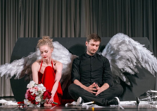 «Зал ожидания» — спектакль театра «Ателье» («Независимый театральный проект»), крупнейшего частного театра России. В прошлом сезоне ему исполнилось 30 лет.