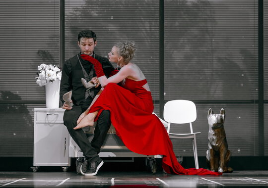«Зал ожидания» российская версия пьесы La Valse du Hasard известного французского драматурга Виктора Аима, пьесы которого ставились во многих странах мира. В центре спектакля — актёрский дуэт Светланы Ходченковой и Александра Метелкина. «Зал ожидания» — это уникальная история отношений героев: между небом и землей, мужчиной и женщиной, игрой и реальностью.