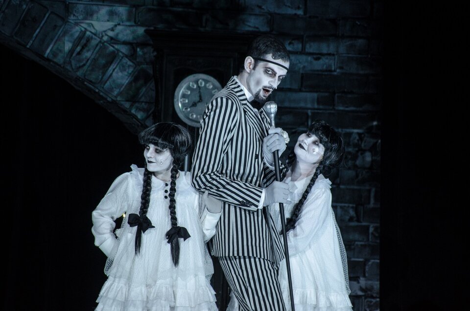 Но сначала был Чарльз Сэмуэль Аддамс — автор знаменитой «Семейки Аддамсов» (семьи фриков, живущих в странноватом и сюрреалистичном хоррор-мире, хорошо знакомой широкому зрителю по фильмам, телевизионным и мультипликационным сериалам). Именно он стал прототипом главного героя. А ещё был немой кинематограф, детективы сэра Альфреда Хичкока, истории в стиле арт-нуар, готические фантазии Тима Бёртона, сказка о Белоснежке и история о Ромео и Джульетте, и много других тем, идей и персонажей, оммажи которым, надеемся, зрители увидят и оценят. Отталкиваясь от известных и даже хрестоматийных образов, создатели спектакля придумали новых героев для своей истории. И предложили им поговорить о вечных и важных вопросах: кто мы? какие мы? хорошие мы или плохие? на чьей мы стороне? какая цель и в чём смысл нашей жизни? зачем весь этот мир, или как поётся в песне спектакля: «Зачем кто-то нас поместил сюда и сейчас?..».