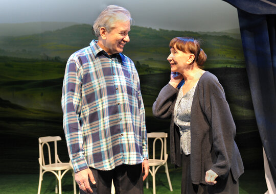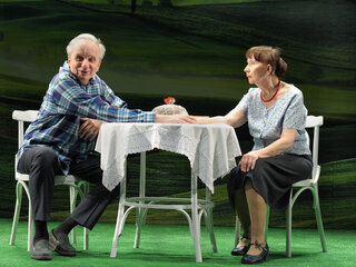 Можно прожить длинную жизнь, не познав счастья любви. Так бы и произошло с героями пьесы Пулинович, если бы они однажды не встретились. Уже в почтенном возрасте, можно сказать на исходе жизни они полюбили, полюбили впервые. Прожив свои жизни безрадостно и серо, они вдруг ощутили, что мир вокруг полон ярких красок. И тогда пожилая женщина, проходившая свою жизнь только в черном, впервые надевает розовое платье, и ей все равно, что думают об этом и ее дети, и старые подруги. Эту трогательную историю расскажут два блистательных артиста — народные артисты России Людмила Дмитриева и Евгений Стеблов.