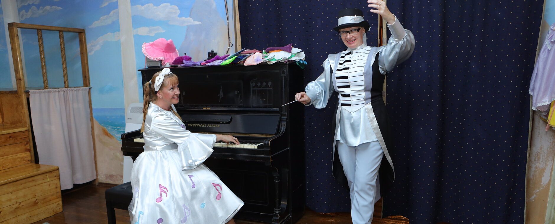 Вместе с синьорой Гаммой и веселой ноткой Ля гости отправятся в мир волшебной музыки. Сказочные герои с удовольствием поведают историю возникновения великого искусства, расскажут какие инструменты были в далеком прошлом, покажут как нужно играть на струнных, духовых, клавишных и ударных инструментах.