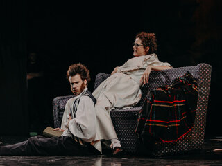 «Спектакль необычен и тем, что мы создали титры, демонстрируемые зрителям на экране по ходу действия спектакля. Приходилось прорабатывать буквально каждое слово произведения, чтобы попытаться передать истинный язык того времени. Конечно же, при адаптации к старорусской орфографии использовался словарь Даля, а также уникальные прижизненные издания произведений Л. Н. Толстого», — говорит создатель титров постановки Александр Адабашьян.