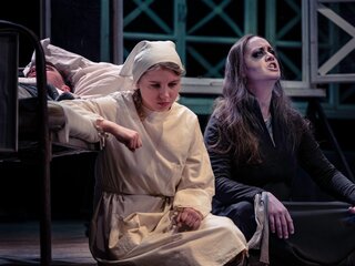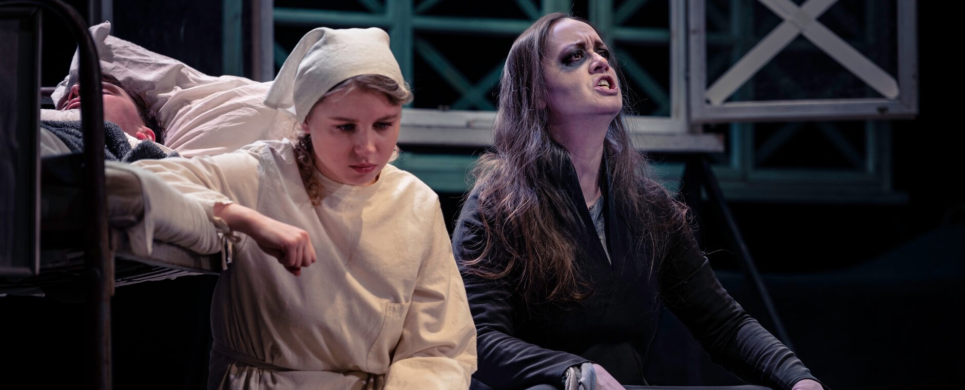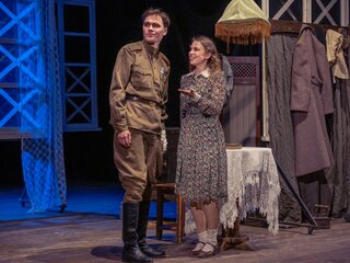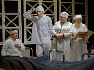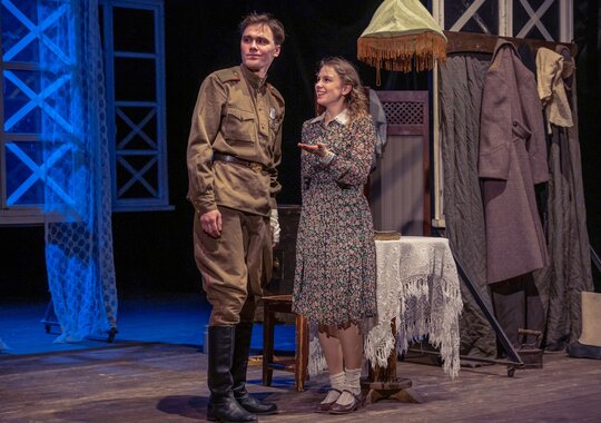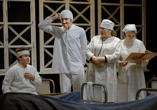 На наших глазах война проходит сквозь судьбы людей — и поживших, и самых юных. Самым юным же ничего не страшно. Презирая смерть, они выбирают любовь, которая горит ещё ярче, ещё нежнее в суровом воздухе войны. Едва юноша открывает глаза после тяжёлой операции, его взору предстаёт молодая медсестра, в которую солдатик влюбляется с первого взгляда. Вот она, первая любовь, самая чистая, беззаветная, незабываемая. И, несмотря на все ужасы войны, лирическая тональность спектакля побеждает, чувства молодых героев становятся ведущей темой сюжета.