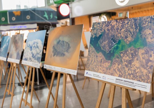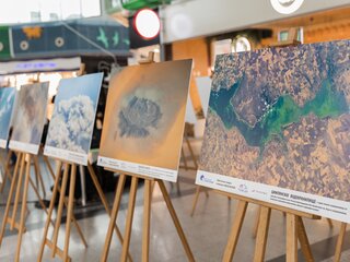 В фойе второго этажа располагается круговая экспозиция, которая рассказывает о самых важных шагах человека на длинном пути познания Вселенной. Среди экспонатов: модель аэродромической машины Ломоносова, макет первого искусственного спутника Земли и космического корабля «Восток» в натуральную величину, макет МКС и космического телескопа им. Хаббла.
