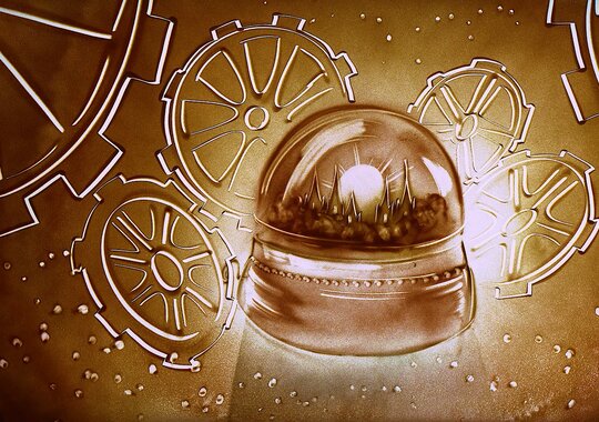 Анна Стрелкова, мастер песочной анимации, создала на экране удивительный городок, полный красоты и множества персонажей и механизмов.