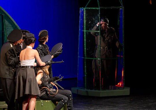 Семьдесят пять лет назад отгремели последние залпы Великой Отечественной войны. Грозные события остались в прошлом тысячелетии. Но прошедшие годы не стёрли из памяти ни боль утрат, ни радость Великой Победы, сам дух которой так нужен сегодня. Одна из удивительных страниц героической военной летописи — история женского полка ночных бомбардировщиков «У-2». Она стала широко известна благодаря кинокомедии «Небесный тихоход», которая вышла на экраны в 1945 году и до сих пор любима миллионами зрителей. А 15 лет назад появилась музыкальная версия этой истории. Две знаменитые песни В. П. Соловьёва-Седого задают музыкальному «Небесному тихоходу» общий тон, а прекрасные мелодии композитора Марка Самойлова, очень точно создают нужную атмосферу, продолжая замечательные традиции песен той поры, песен, с которыми шли в бой и побеждали. Великая тема, прекрасная музыка, незабываемые образы советских лётчиков, созданные когда-то звёздами советского кино Н. Крючковым, В. Меркурьевым и другими замечательными киноартистами, заставили нас вспомнить эту красивую историю и попытаться по-своему рассказать её сегодня Вам. Так родился наш спектакль — дань памяти героям Великой Отечественной войны, павшим и живым, которые среди крови и страданий, боли и ожесточения находили в себе мужество не только противостоять смерти, но и сохранять в своих сердцах Веру, Надежду, Любовь.