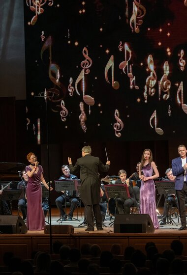 Праздничный концерт. Исполнители: Творческие коллективы и солисты филармонии.