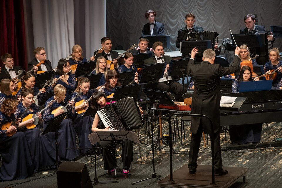 Исполнители: — Русский академический оркестр; — Олжас Нурланов, баян (Москва). Ведущая — Дарья Нехаева, лектор—музыковед