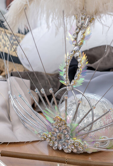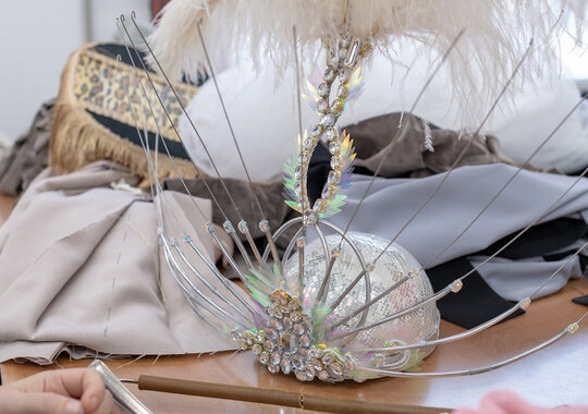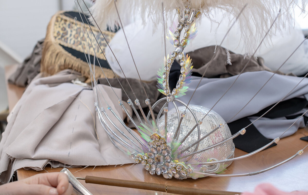 В модульном здании, которое находится на территории театра, работают декораторы, бутафоры, портные по пошиву головных уборов и одежды, сапожники.
