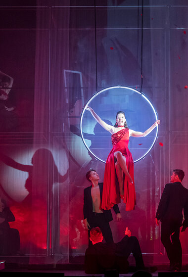 Мюзикл Ульяны Стратонитской и Алины Байбановой «Человек, нашедший свое лицо» по мотивам сочинения Александра Беляева написан специально для постановки в Новосибирском музыкальном театре. Герои фантаста Беляева не первый раз оказываются на театральных подмостках, достаточно вспомнить спектакли по мотивам его культового романа «Человек-амфибия». Но судьба гениального Тонио Престо, героя позднего романа писателя, впервые получает свое сценическое воплощение.