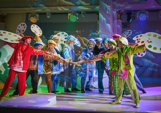 По задумке режиссера-постановщика Вячеслава Стародубцева, «в черно-белую зиму ворвутся яркие краски»: новогодняя елка будет сделана из множества разноцветных шариков, а сцена превратится в мольберт, на котором каждый из 12 месяцев нарисует свой яркий и индивидуальный мир.