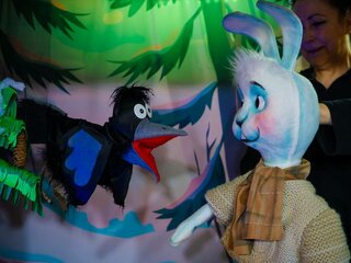 Спектакль о добродушном Зайце, который отправляется в лес за пропитанием для семьи, но по дороге, встречая друзей, раздает им всё, что собрал. Да ещё и сталкивается с опасным Волком и насмехающейся Вороной.