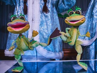 В весёлом музыкальном представлении выступят самые необычные артисты. Весёлые лягушата спляшут чечётку, дрессированная собачка покажет настоящие цирковые номера, а экзотические птички, дружно споют новогодние песенки.