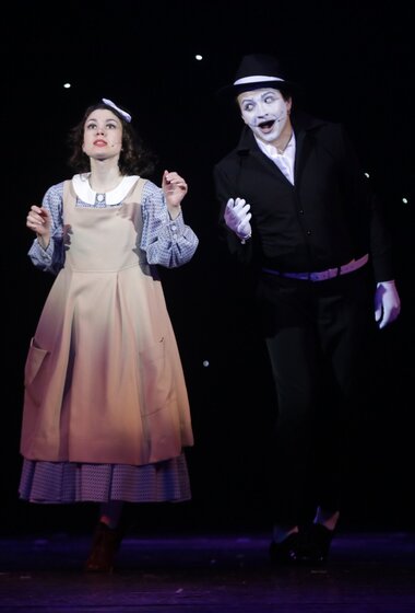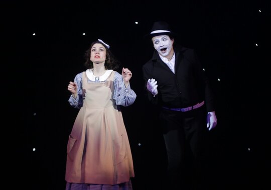 Не удивительно, что авторы и постановщики спектакля совершенно в духе знаменитого «короля бессмыслицы» находятся «не совсем в своём уме», иначе как можно браться за материал, где в каждой фразе куча загадок и подтекстов. Режиссёр и хореограф из Москвы Татьяна Безменова, с работой которой зрители знакомы по мюзиклам «Зойкина квартира» и «Восемь любящих женщин», с упоением и восторженным блеском в глазах разгадывает вместе с артистами кэрролловские шарады, воплощая отгадки в пластических характеристиках героев, а красноярский художник Елена Турчанинова вдохновенно ваяет удивительно самобытные и фантастические декорации и костюмы, столь соответствующие духу кэрролловской буквы, как будто ею руководит сам автор.