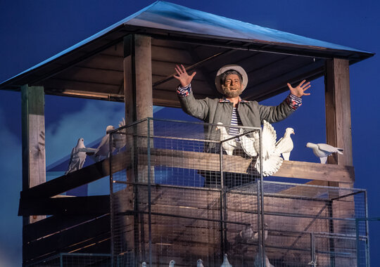 Эта история, хорошо знакомая нам по всенародно любимой киноленте, вдохновила известного композитора Андрея Семёнова на создание музыкального спектакля. Кстати, изначально автор сценария фильма «Любовь и голуби» Владимир Гуркин писал эту лиричную, трогательную и невероятно смешную историю любви, измены и прощения для театральных подмостков. И премьеры пьесы, как и позже показы кинофильма, имели оглушительный успех.